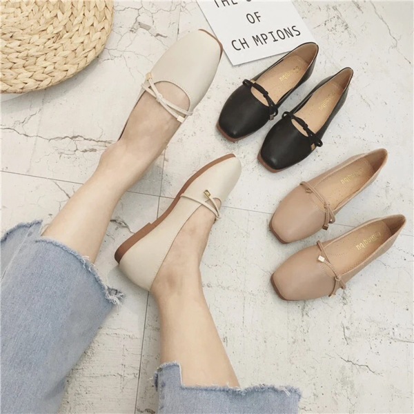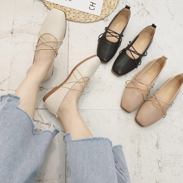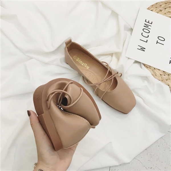 晚晚风 张旅菲huifeng智熏同款鞋 芭蕾舞者复古方头浅口平底单鞋