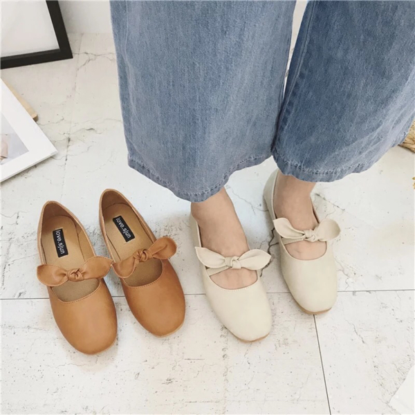 浅口单鞋女夏2017新款韩版百搭复古蝴蝶结奶奶鞋学生圆头平底鞋女