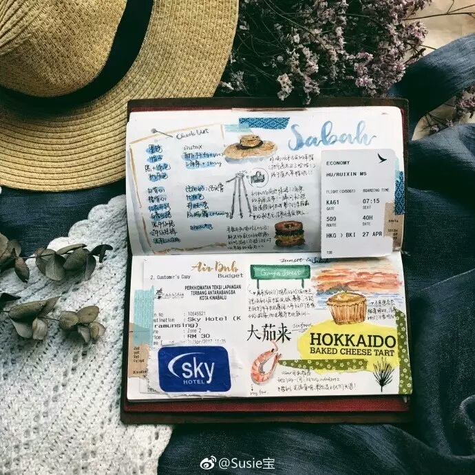 她的旅行手帐属于复古风,也是我比较喜欢的风格。经常看她用TN手帐记录旅行日志。拍旅途的风景、画手帐的视频,而且画画也超棒。