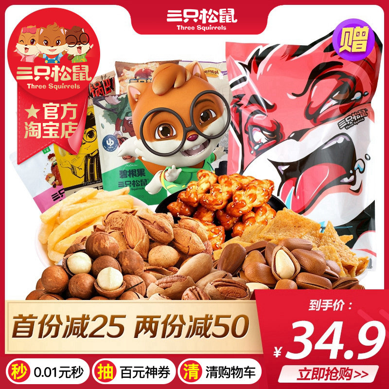 三只松鼠零食礼包:双12狂欢价59.9,领满59-25优惠券,到手价仅需34.9,另外店铺还有满148-25元优惠券~