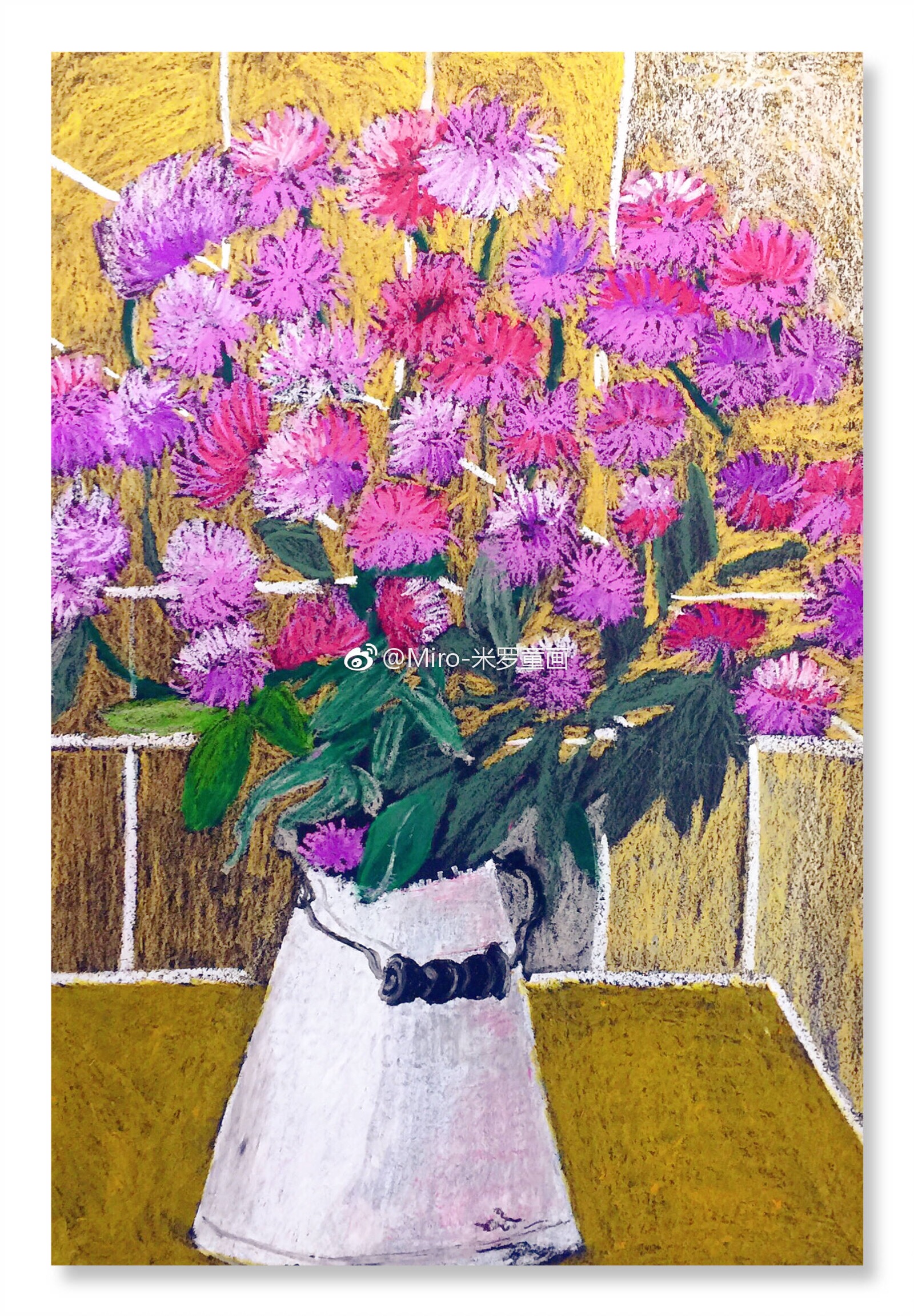重彩油画棒 写生 房檐 廊角 建筑 儿童古建筑速写