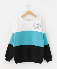 韩版拼接条纹撞色复古车轮印花圆领套头女卫衣长袖秋冬潮流女装