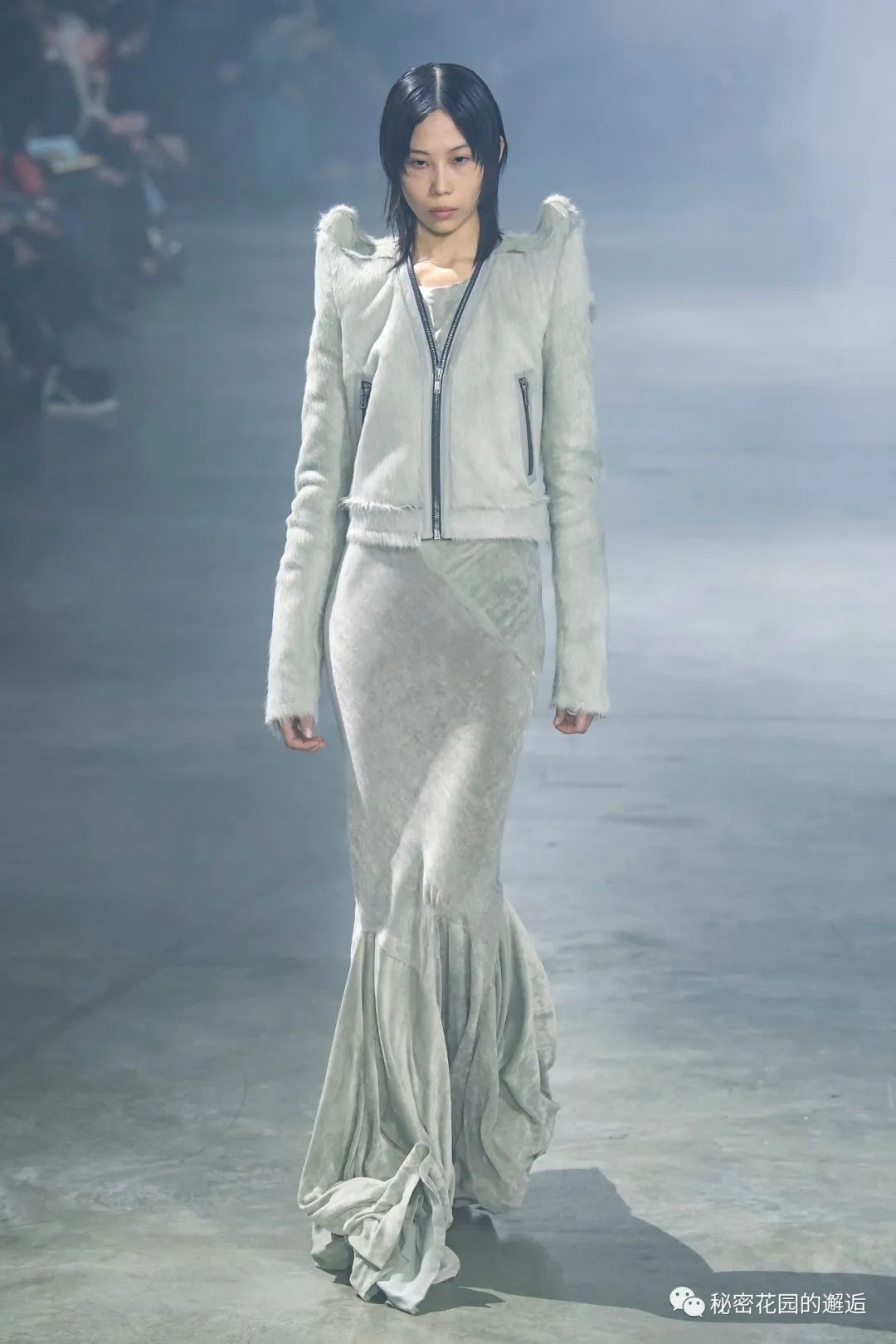 在一个以外套为主流的季节里,很少有单品可以与 Owens 的大胆相媲美——他展示了袖子垂到地面的羽绒夹克,像鹦鹉螺壳一样卷曲在躯干周围的羽绒夹克,还有带有山羊皮饰边的“Theda Bara”派克大衣,看起来像是正在制作中的商业热门商品。 “我一直听到人们为现在展示时尚而道歉,”欧文斯说。“我们是一个必须支持很多人的行业,没有理由为此找借口,我们是表达美学所能提供的最好的人,这具有巨大的社会和文化价值。”
