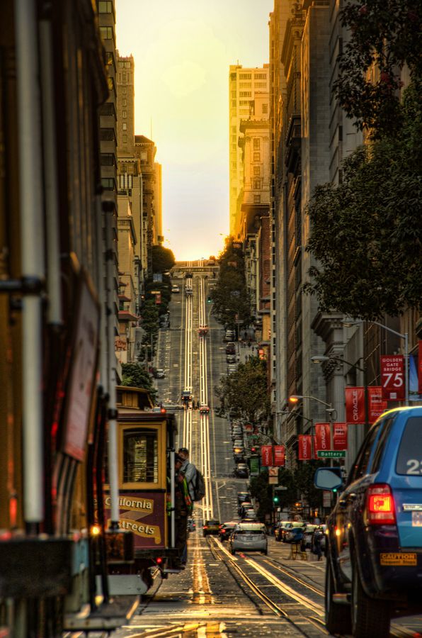 San Francisco, California, USA。美国加利福尼亚的旧金山是除了中国之外最有中国气息的城市,是美国最大的中国“城”。城区建在40个小山坡上,是座名不虚传的“垂直城市”,每条街道大约都有30度到45度的坡度。古老的叮当车(有轨电车)行驶在旧金山上上下下的街道形成一道亮丽的风景。