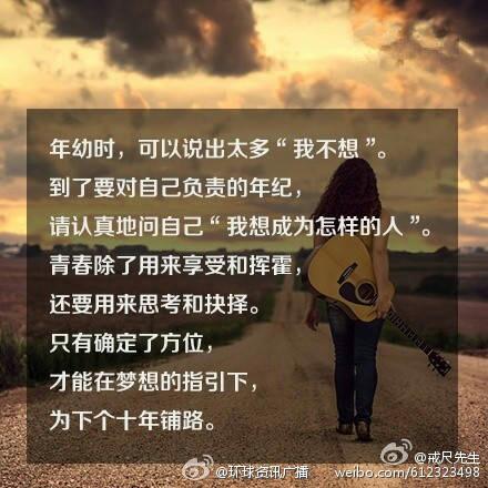 很喜欢这段话,:“日落西山你不陪,东山再起你是谁?同甘共苦你不在,荣华富贵你不配! 真正的强者是,夜深人静了就把心掏出来自己缝缝补补,完事了再塞回去,睡一觉醒来又是信心百倍。 活着就该逢山开路,遇水架桥。 生活,你给我压力,我还你奇迹!