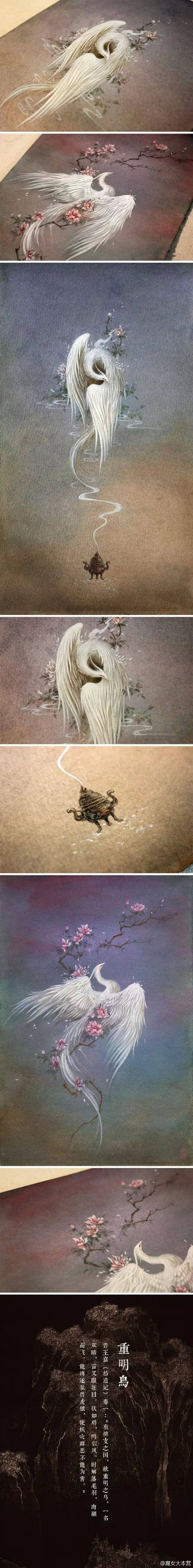 【中国百鬼】姑获之鸟。东晋·《玄中记》:“姑获鸟,夜飞昼藏,盖鬼神类。衣毛为鸟,脱毛为女人···鸟无子,喜取人子养之,以为子。”