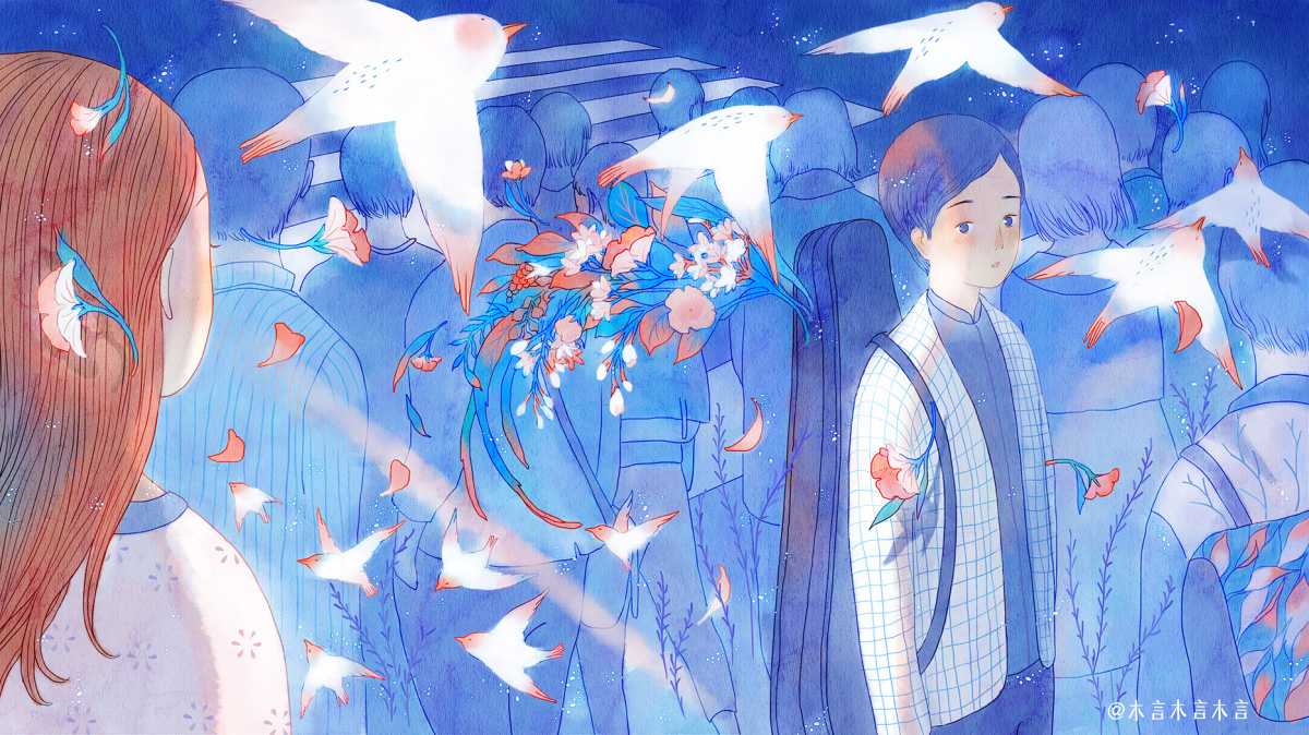 我们之间,曾以为是错过,原竟是重逢,于千万人中,于千万时刻。 阳光断成几截折线,你唇齿翕动,语音起伏于群鸟低飞的翼上。 这一次,真真切切听你在说: ——我好像在哪里见过你。 ——我也是。